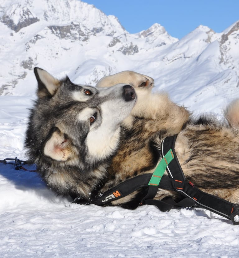 Iti is one of the team's huskies. Mother of Norman, Stella, Kovu and Kion, she's beginning to prefer petting to running, but is a little less affectionate with unfamiliar faces. She's an experienced, quiet and discreet dog. She has now stopped running to enjoy a wonderful retirement.
